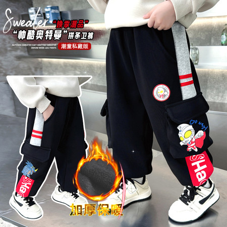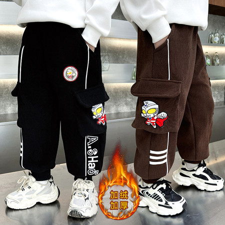 c*8收藏“辉童衣柜彩色织带加绒奥特曼条绒裤子”